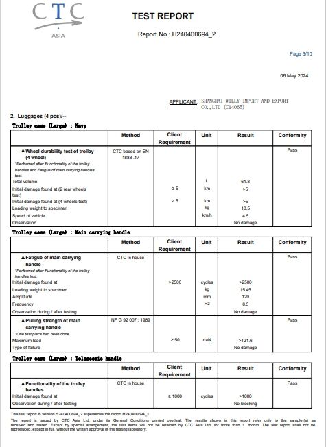 6. our luggage meet REACH standard, and we also have got GS,BSCI certificate.
