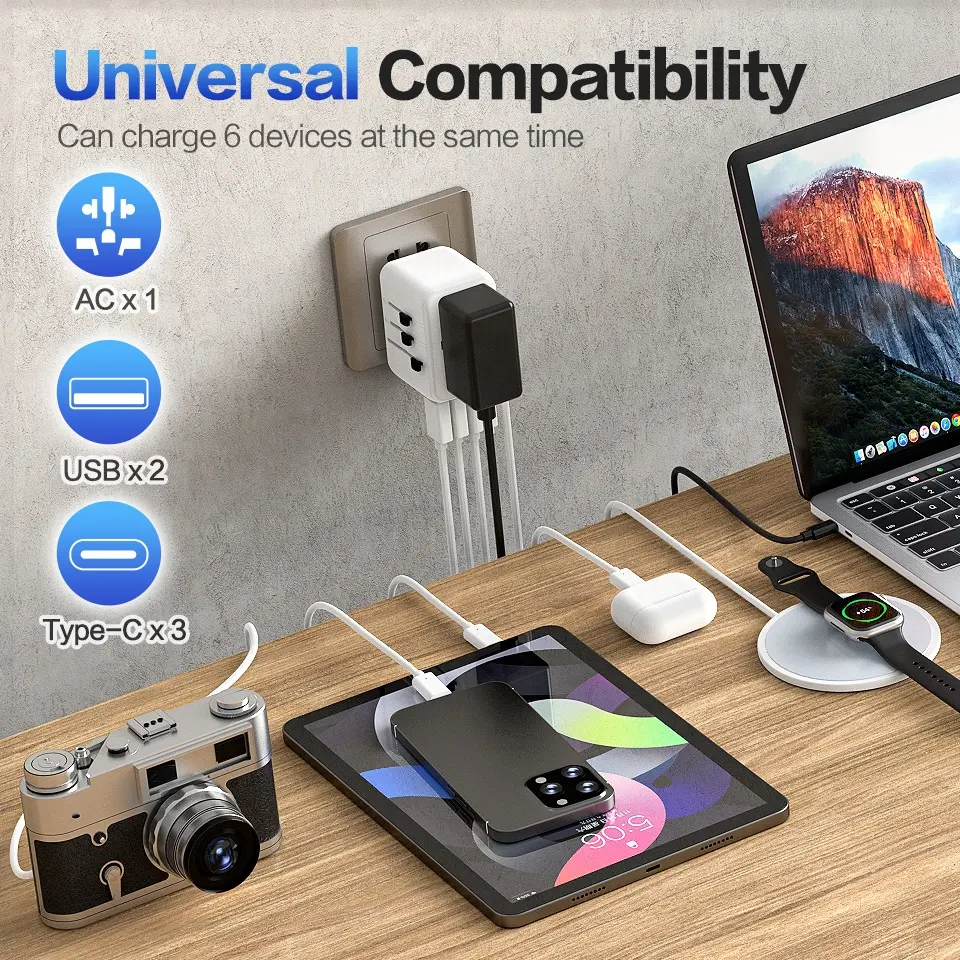 Worldplug High Power Charger PD 3.1 GaN 140W Universal Travel Adapter for Macbook