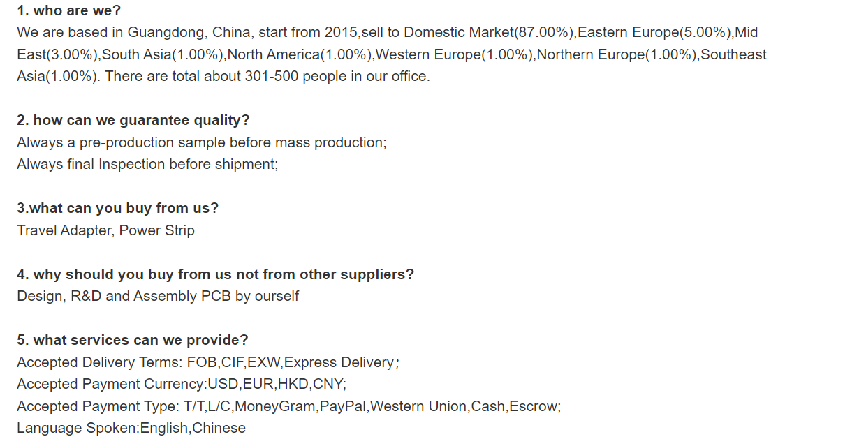 A: Our company has been in business for 15 years and has a reputation for delivering high-quality products and excellent customer service.