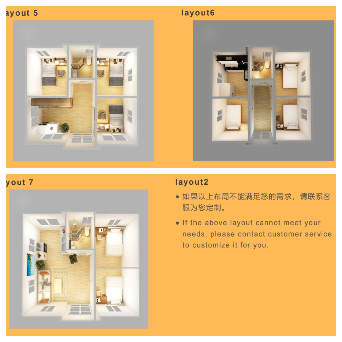 The layout of the house is flexible and changeable. We can provide the layout design drawing, or design directly according to the user's requirements