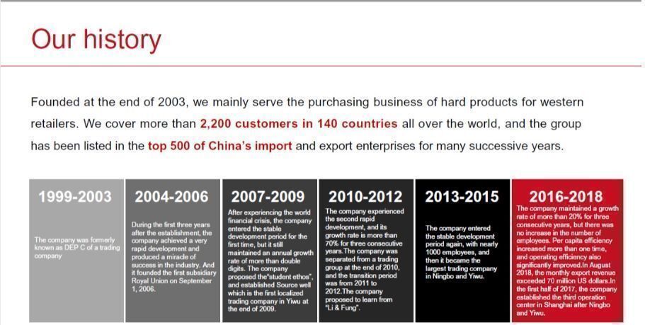 In the last financial year, our sales turnover exceeds US$60 million, shipped more than 3,000 containers.