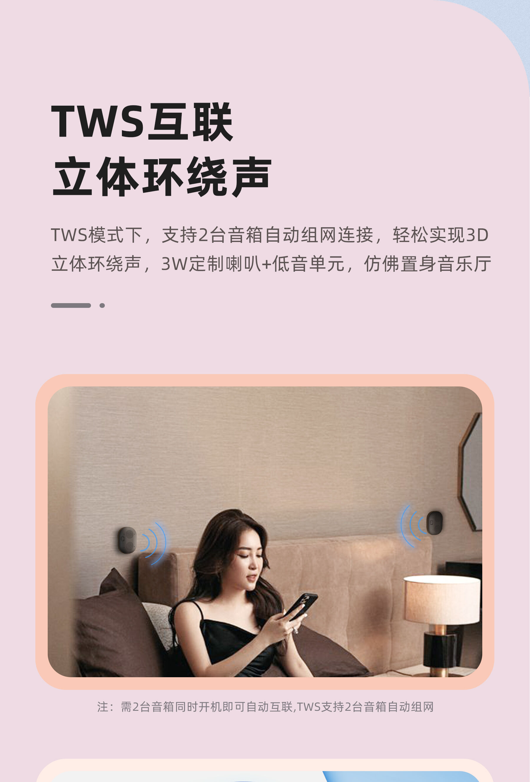 3. TWS interconnection method: When the two amplifiers are not paired, the devices are turned on at the same time, and the amplifiers are automatically connected in about 8 seconds.
