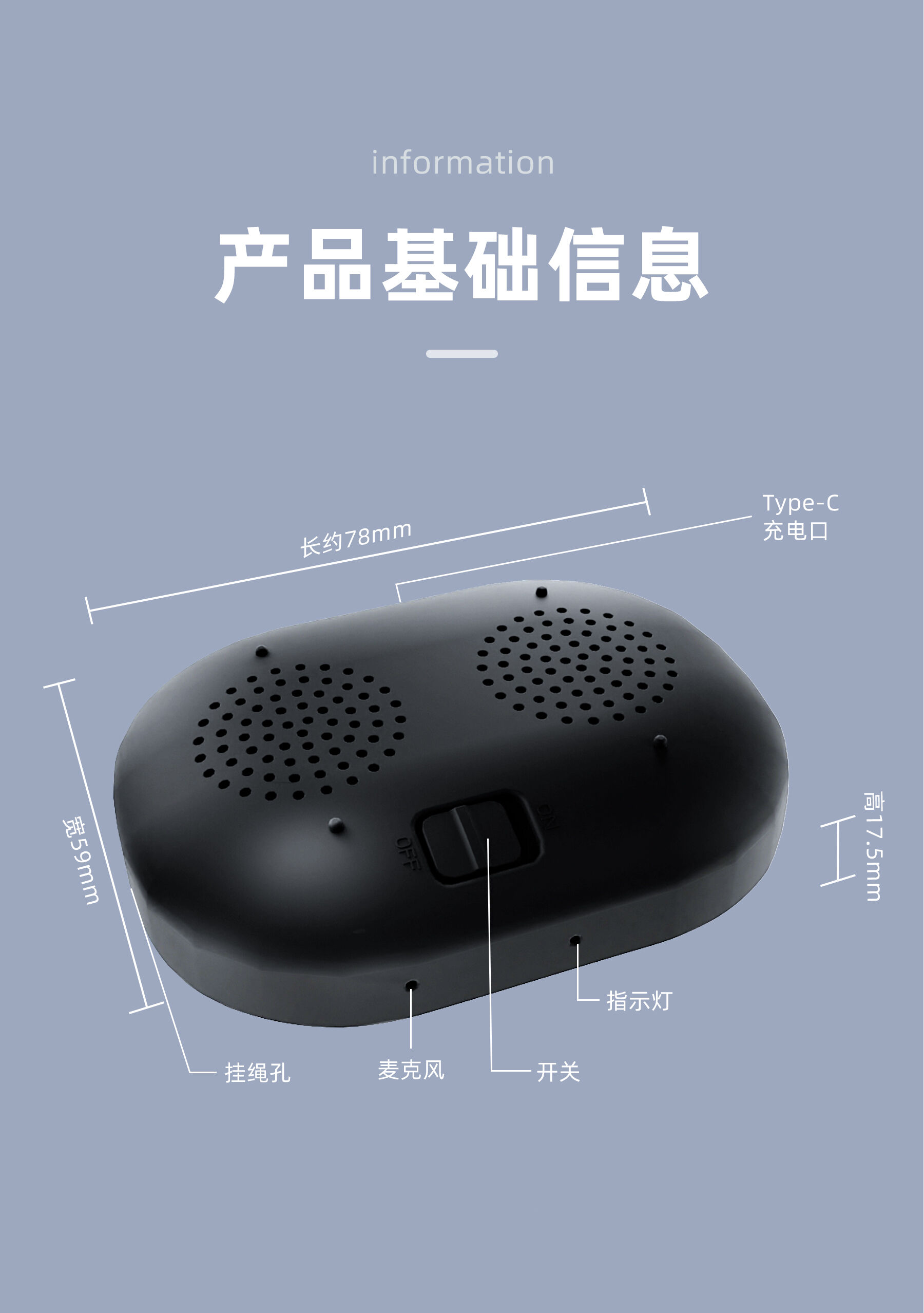 Speaker: 4Ω/3W Φ36mm Speaker + Bass Diaphragm