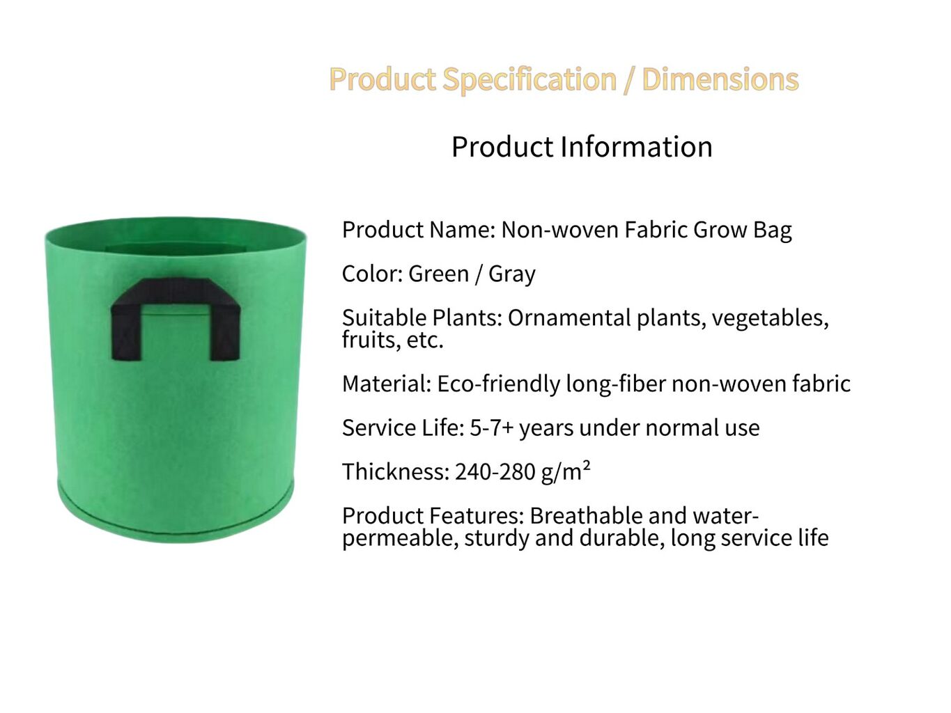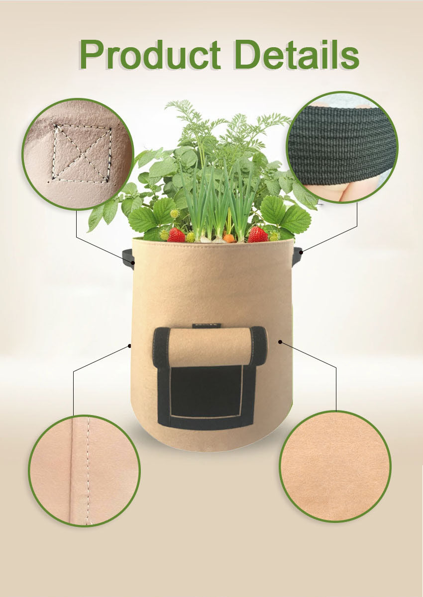 A: Our planting bags are made of high-quality, eco-friendly non-woven fabric, polyester, and polypropylene。