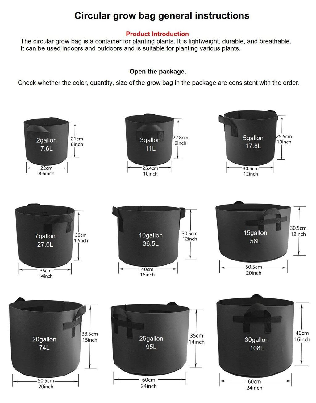 5. 2包15加仑种植袋,18*18英寸(直径x高度),