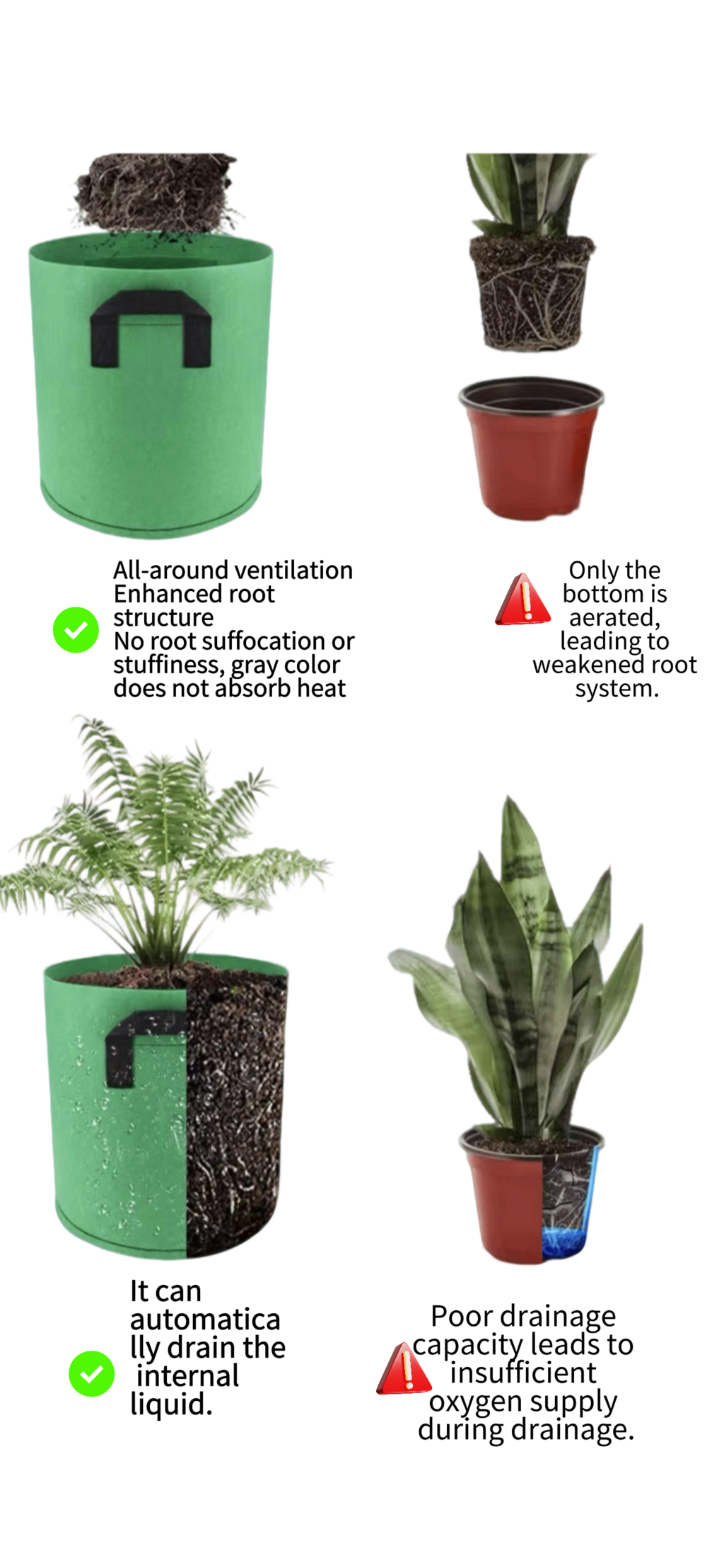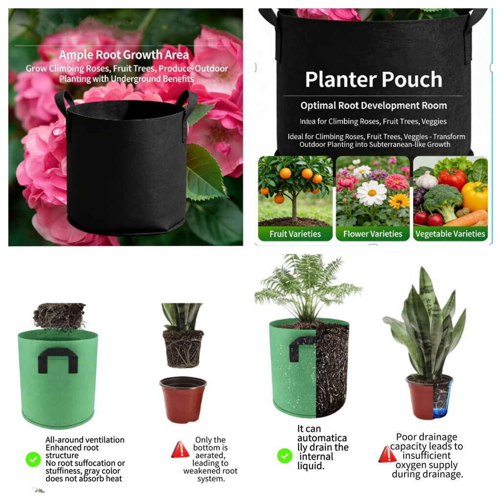 Compared to traditional flower pots, our non-woven plant bags have three core advantages