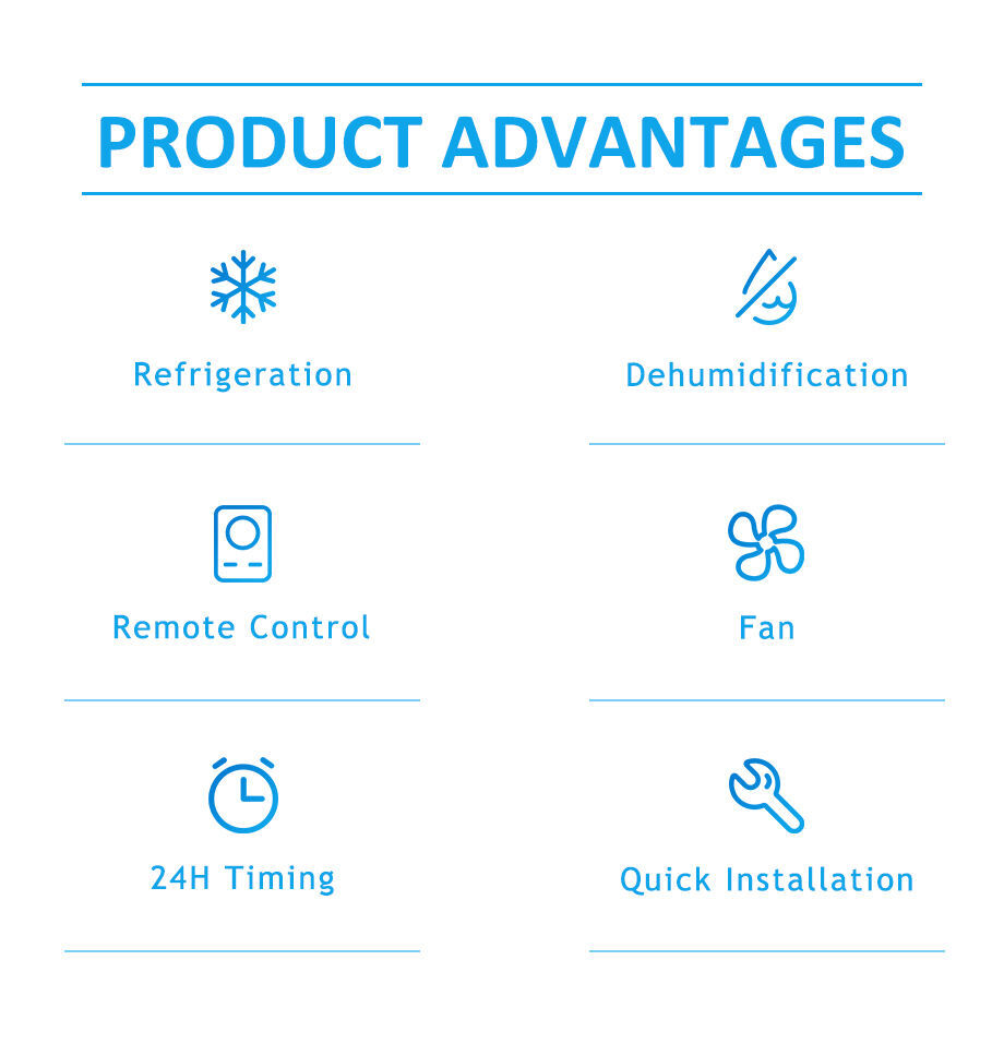 | Features | • 12000BTU Quiet portable air conditioner • 4 in 1 operation system consists of Cool, Dry, Fan and optional Heat functions. • Auto-evaporative system • Three fan speeds • 1.5m Exhaust hose, window plate, round connector and remote control included • directional air louvers • button control with LED display • 360 degree casters • Chilled air comes from the top front for better personal comfort • Easy to excess washable mesh filter |
