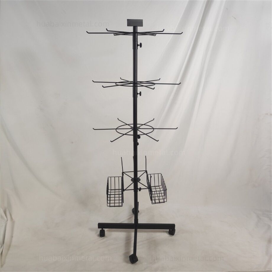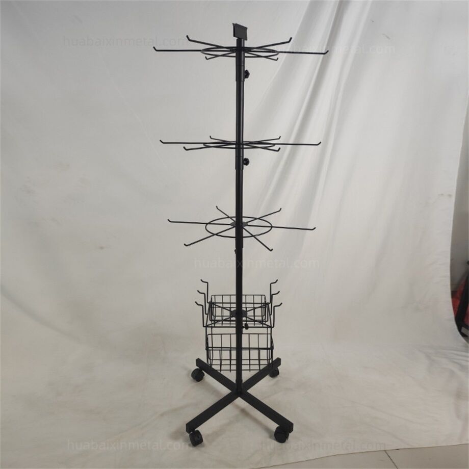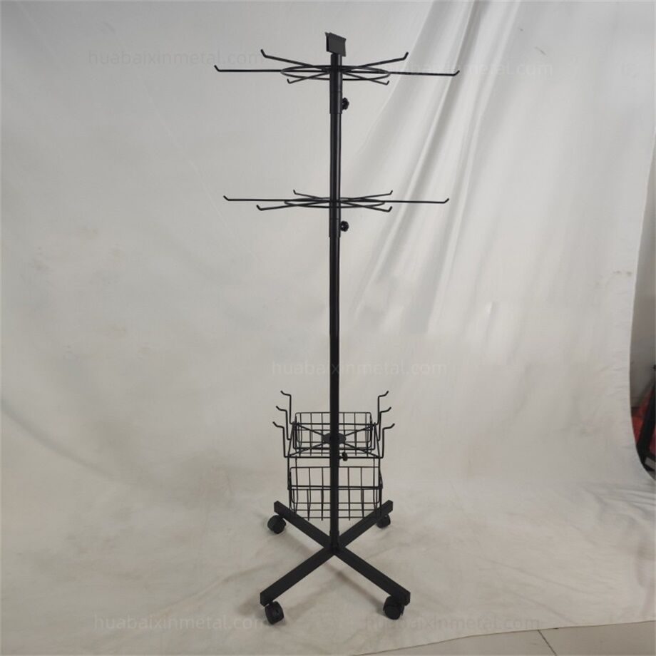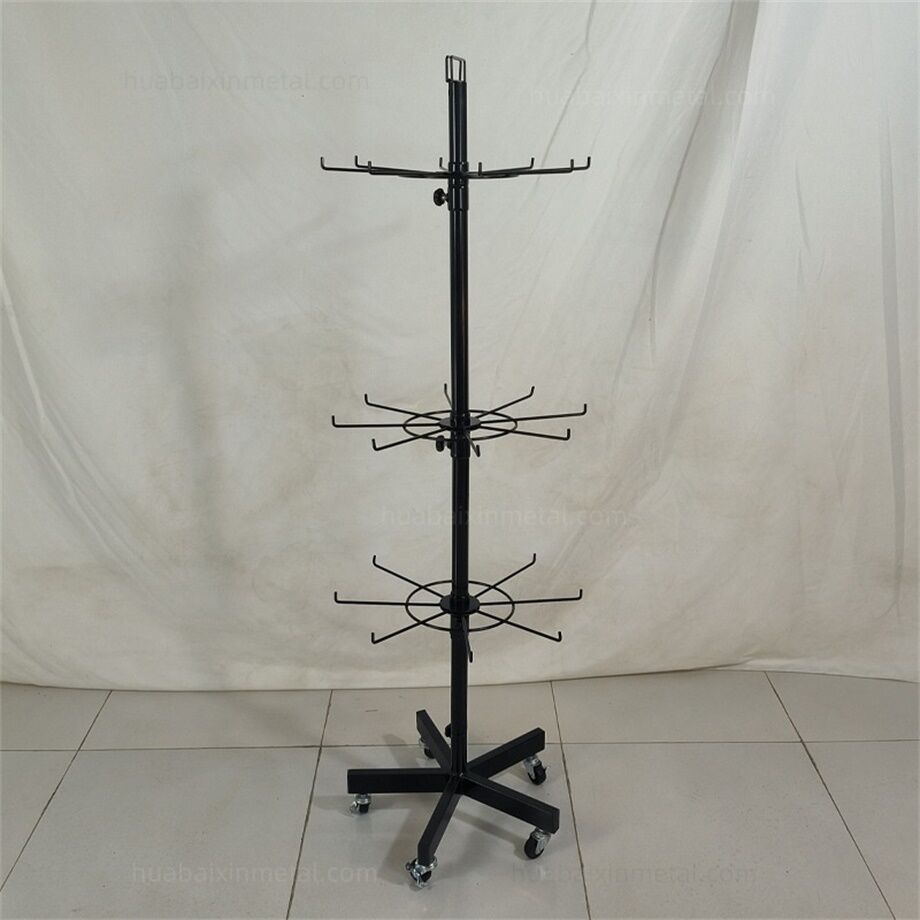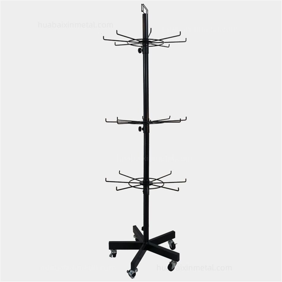 For sports stores, a Rotating display rack for sports offers dynamic visibility for equipment and apparel. These racks spin 360 degrees, allowing customers to browse items from all angles while saving floor space. A Rotating display rack for sports might hold basketballs, soccer balls, or fitness accessories like resistance bands. In the sports apparel section, such racks can showcase hats, gloves, or team jerseys, with rotating motion drawing attention to featured products. Durable Rotating display rack for sports units with weighted bases ensure stability, even in high-traffic areas.