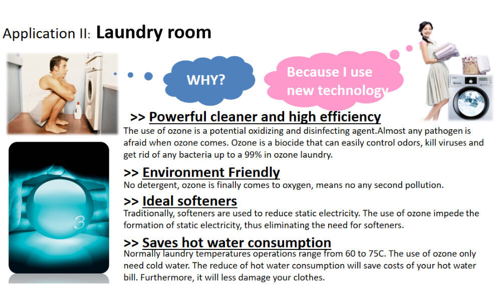The use of ozone is a potential oxidizing agent.Almost any pathogen is afraid when ozone comes. Ozone is a biocide that can easily control odors, kill viruses and get rid of any bacteria up to a 99% in ozone laundry.