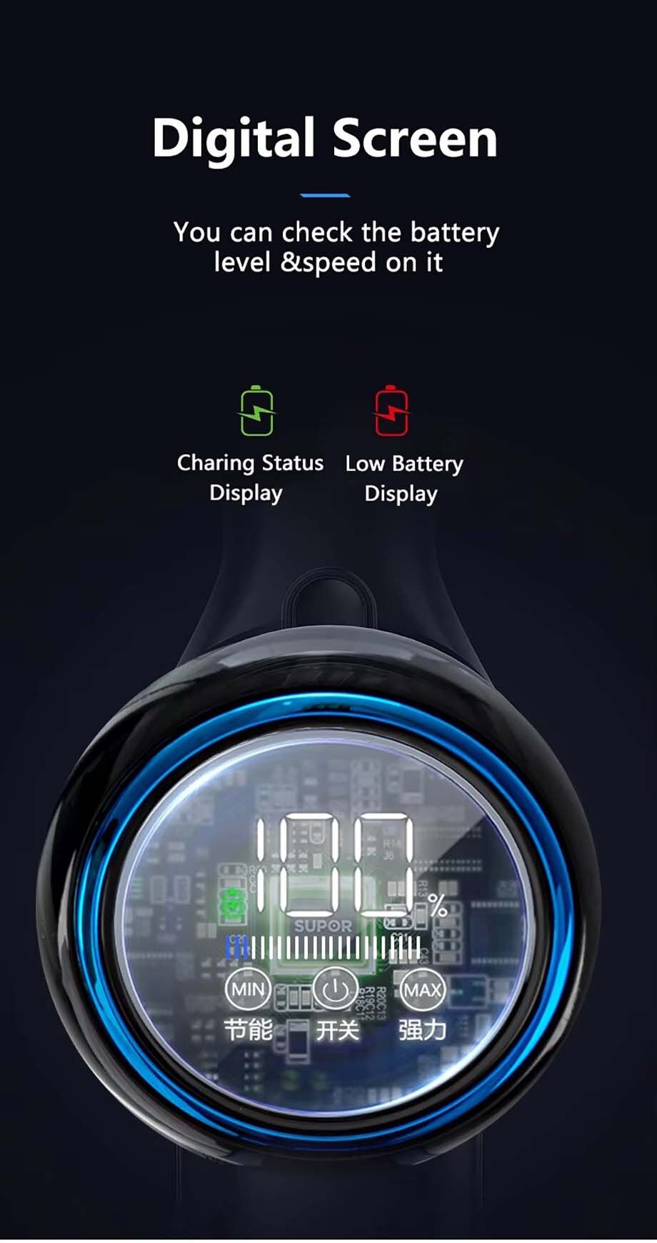 4.LED screen with Breathing indicator